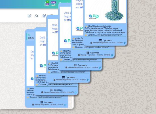 Redactá tus mensajes y dejá que Pip se encargue de enviarlos en el momento justo, sin que tengas que intervenir.